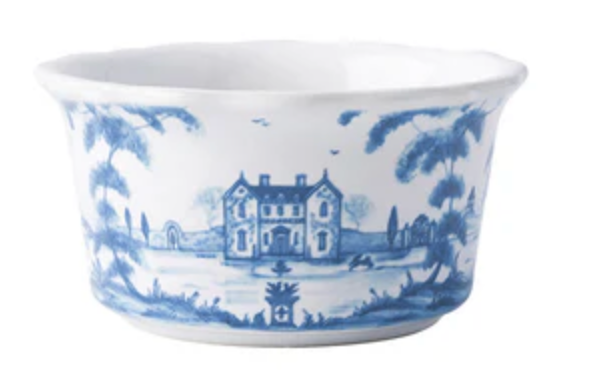 From our Country Estate Collection- Profusely practical and painted with the estate's landscape on a minuscule scale, our ramekins are reminiscent of the fine portrait miniatures that lovers would carry in their waistcoats and skirt ruffles. These versatile and petit gems will quickly become among your most cherished items from the kitchen. Featuring: Kite Fliers, Main House, Boathouse, and Tea Party Tent